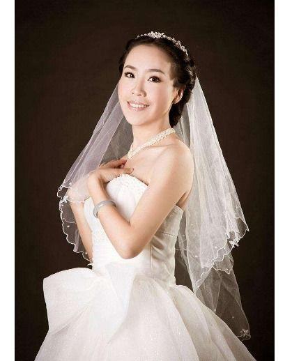 这种方法适合各种款式的头纱,固定效果稳定,不易变形。